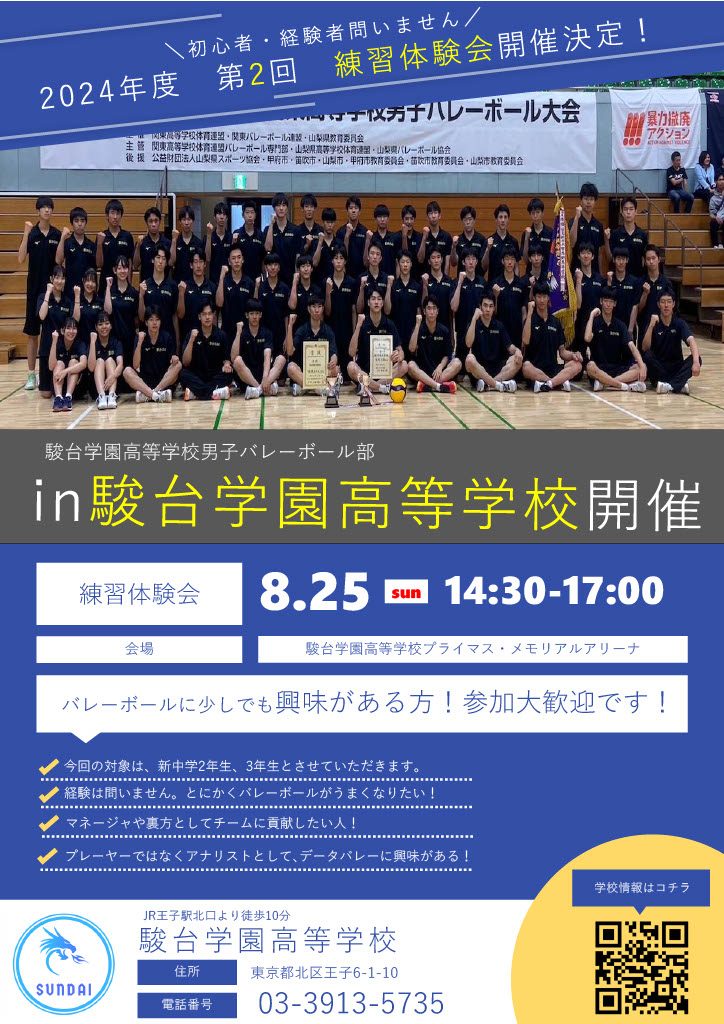 高校男子バレーボール部体験練習会のご案内(8月25日)